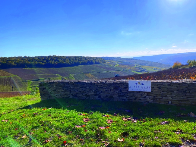 The small picturesque village of Saint-Romain is perched on the edge of a limestone cliff above the Côte de Beaune and contains a mere 240 acres of vineyards. The village is known for its dramatic views of the valley below and as home to perhaps the most renowned barrel producer in the world, François Frères. It is an exceptional terroir thanks to its position on top of a hill and its limestone-clay soil which forces the vine roots to descend deep into the bedrock to obtain the nutrients they need. The typicity of the soil in Saint-Romain gives minerality, elegance, and freshness to the grapes. Alain Gras’ vineyards in Saint-Romain are at the very highest part of the hill, where they slope down into a small valley.